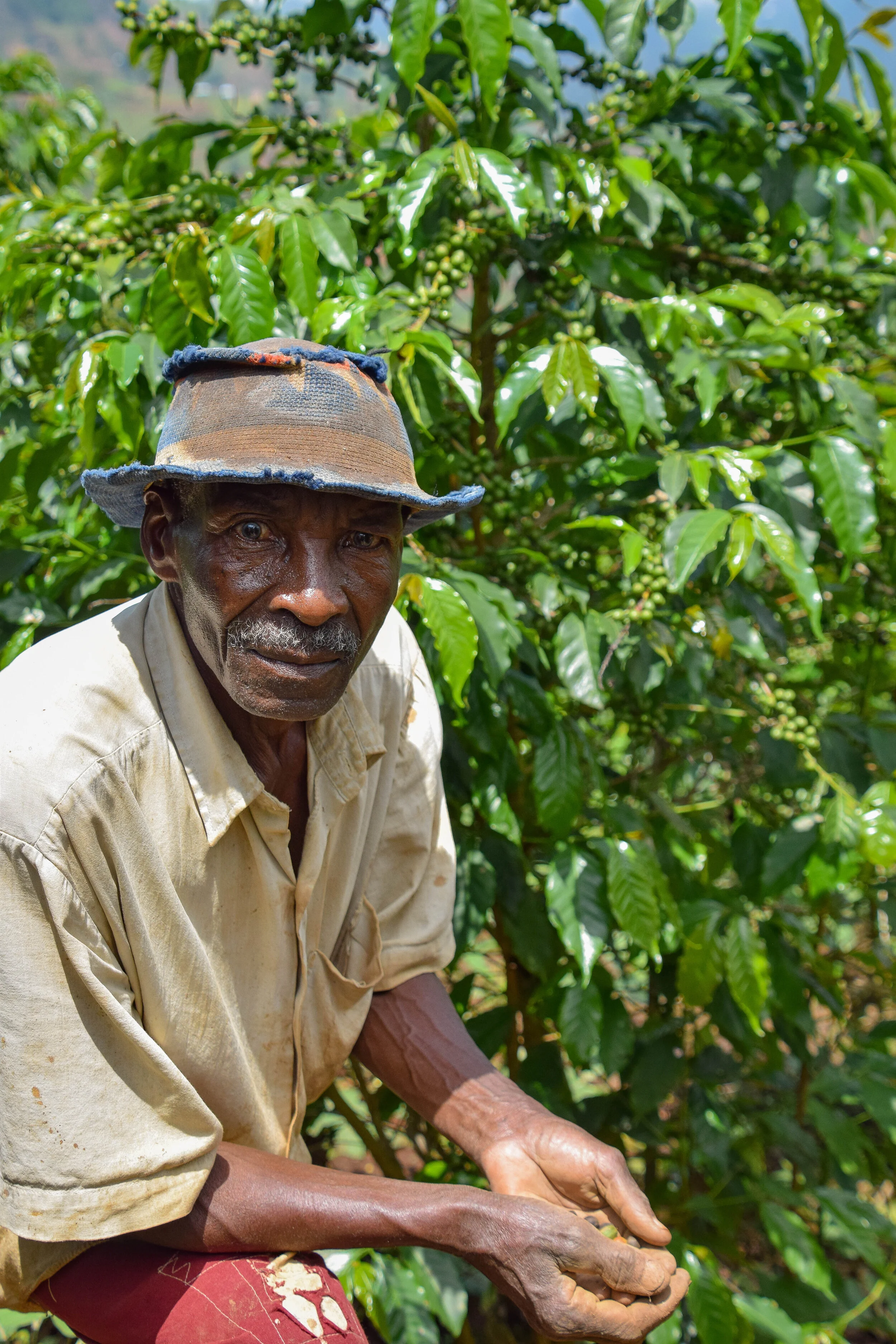 Pascal Ntawuhezisi, 85 ans, caféiculteur de Gomvyi (près de Murambi) au Burundi. Pascal possède plus de 1000 caféiers et grâce aux revenus de ses récoltes, il a fait vivre sa famille de 6 garçons et deux filles. Rien que l'année dernière, Pascal a livré plus de 1 500 kg de café à la station de lavage de Migoti, à quelques pas de sa ferme.